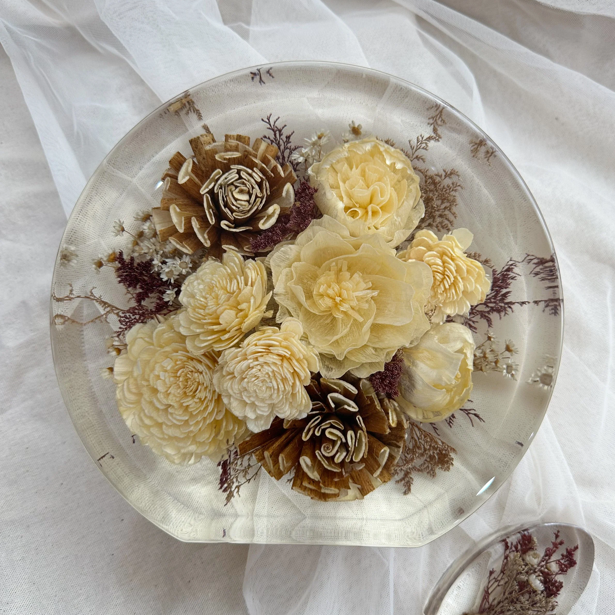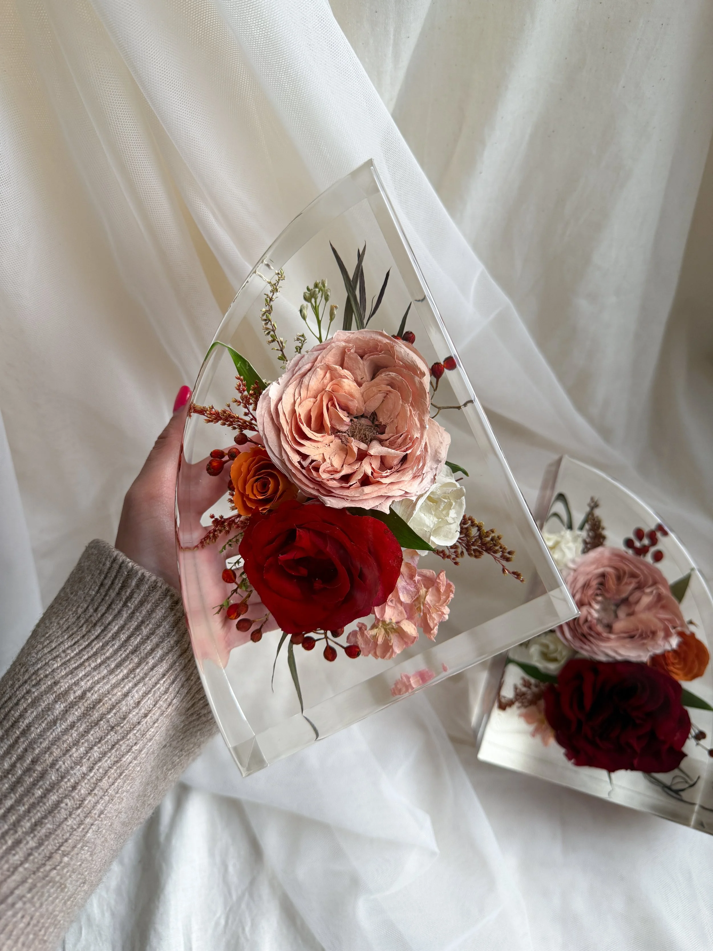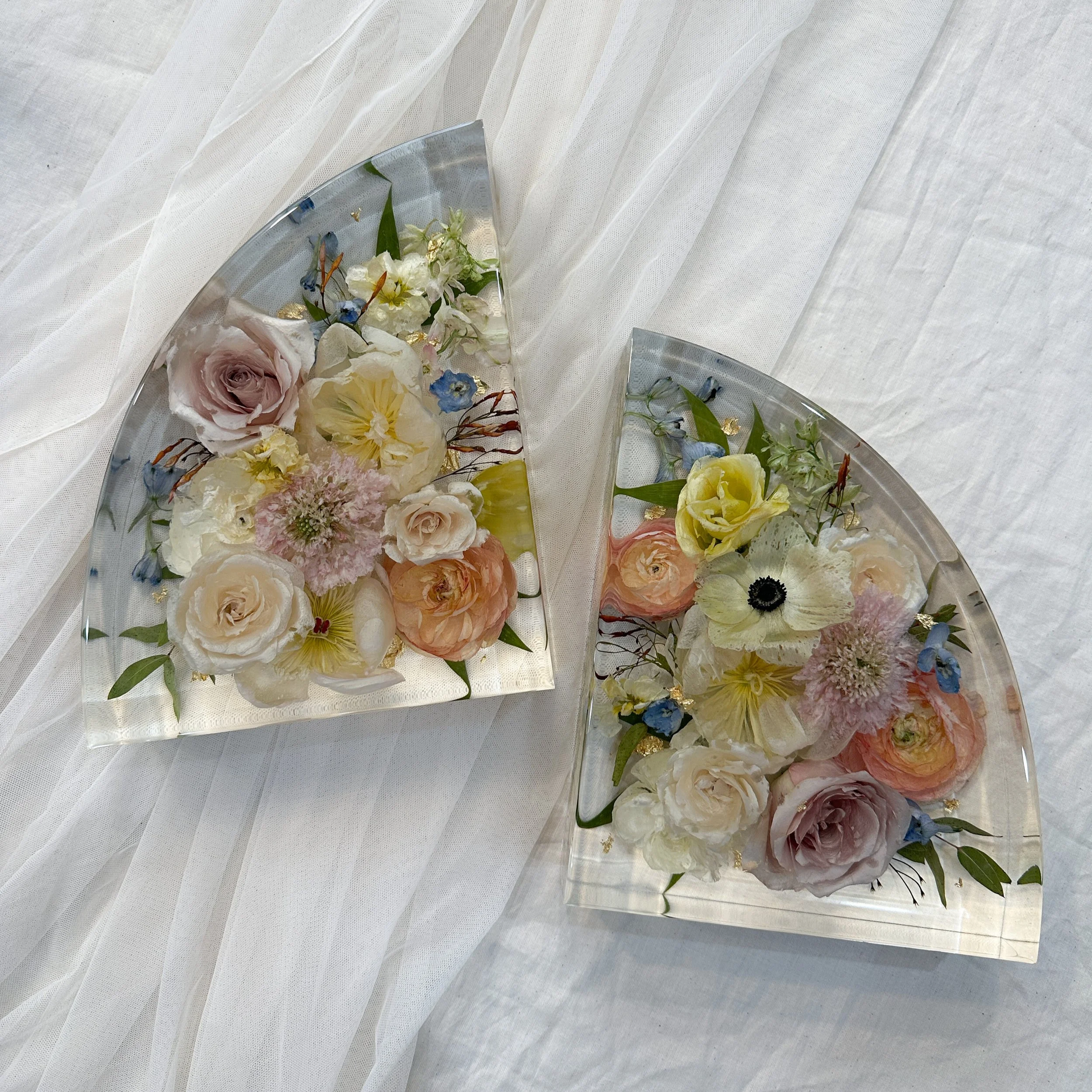 Explore our collection of custom-made preservation designs to see how your blooms can be transformed into lasting keepsakes. Pricing for each item is provided as a reference. To move forward with your order, submit an inquiry here. Once your date is approved, secure your spot by purchasing the $100 non-refundable project deposit below. Once your flowers arrive at our studio, we’ll send a final invoice for the remaining balance, with your deposit applied towards the total.